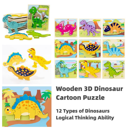 3D Wooden Dinosaur Puzzle, Buckle Design for Early Education: Green / One Size