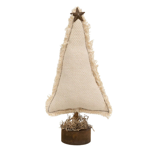 Fringed Stuffed Ivory Canvas Christmas Tree on Base, 9.5"