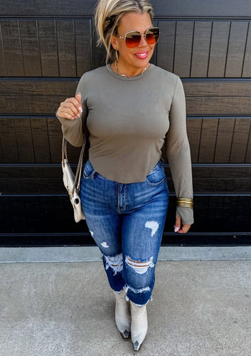Olive Curved Hem Ribbed Top