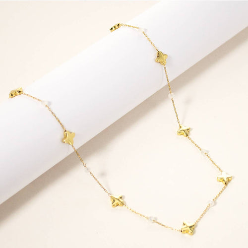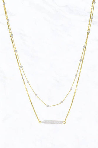 2 Layer Freshwater Pearl Short Charm Necklace: Gold Gream