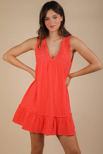 Trim Detail V-Neck Knit Mini Dress: CORAL