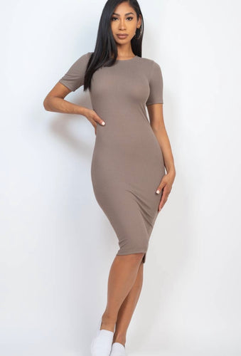 Taupe Ribbed Midi Dress SKUCPTR
