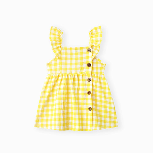Single-Piece Baby Girl Plaid Dress: Pale Yellow