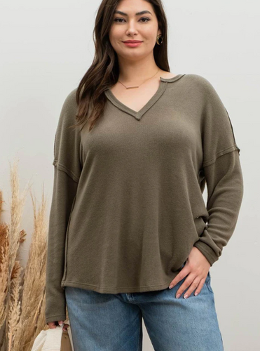 Plus Size Dark Olive Raw Hem So Soft Top SKUPSBPDO