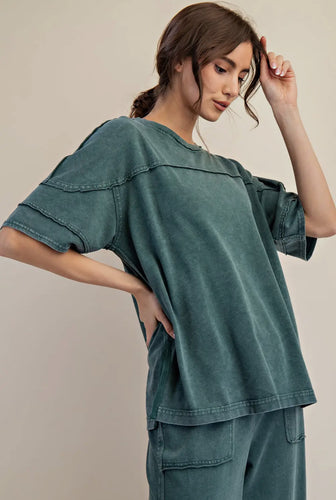 EXPOSED SEAM RELAXED LONG SLEEVE KNIT TOP: HEATHER GREY