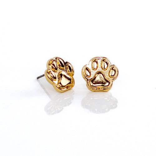 Paw Print Stud Earrings Gold .5"