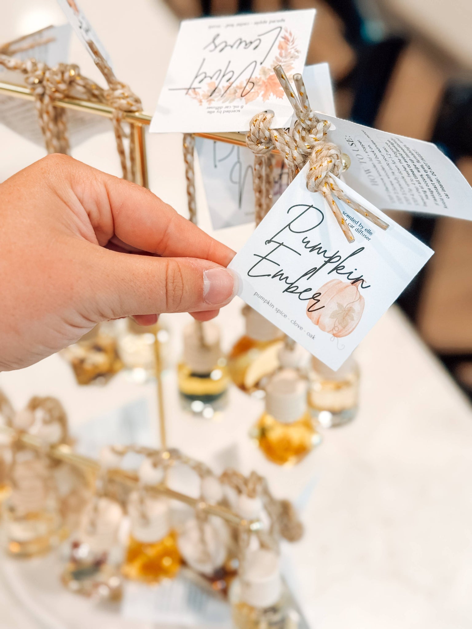 Includes 50 of our fall car diffusers, 5 different scents - 10 of each one. Come already tagged, so all you have to do is display & sell! Tag includes scent name & short scent description on the front, and the back of the tag lists full instructions for use.