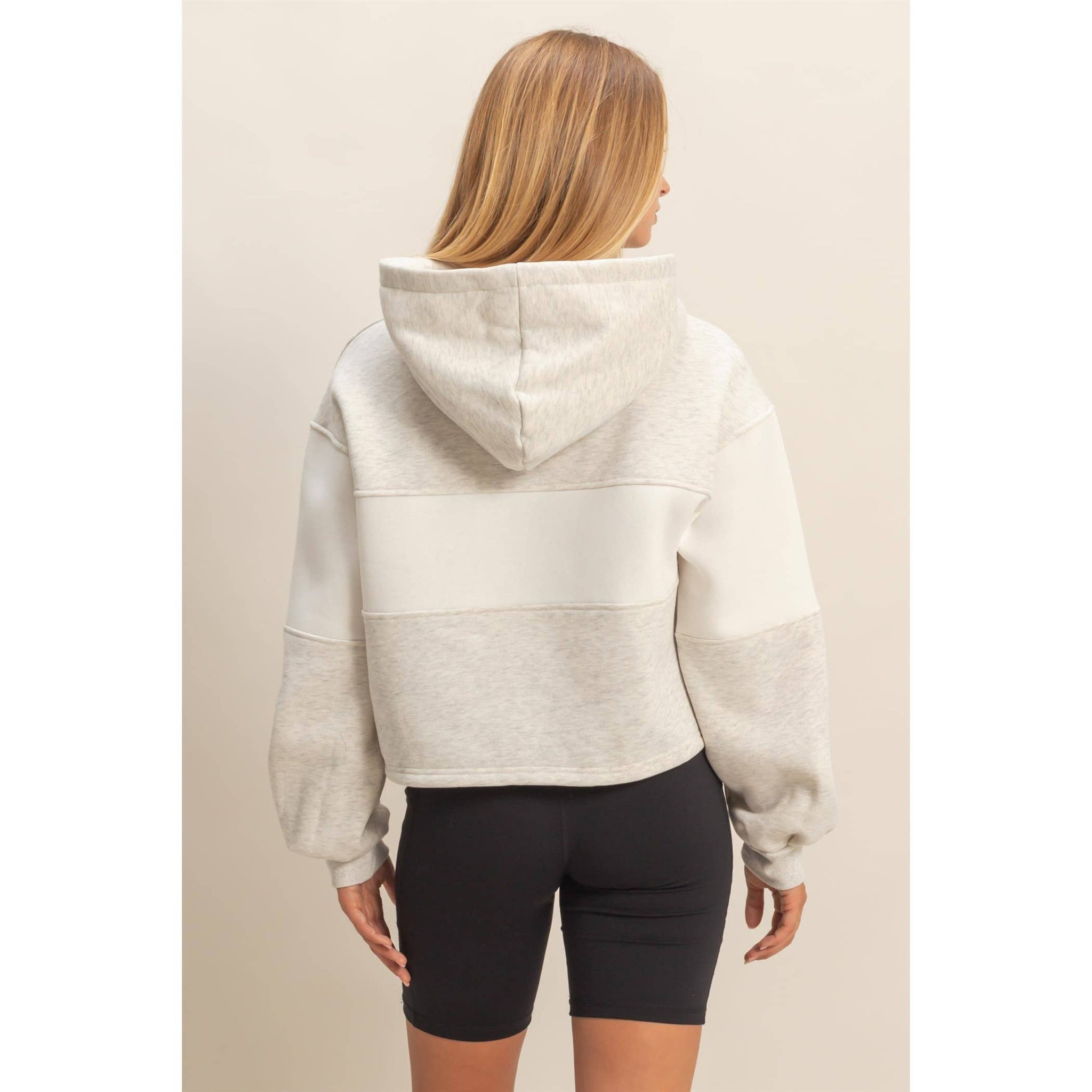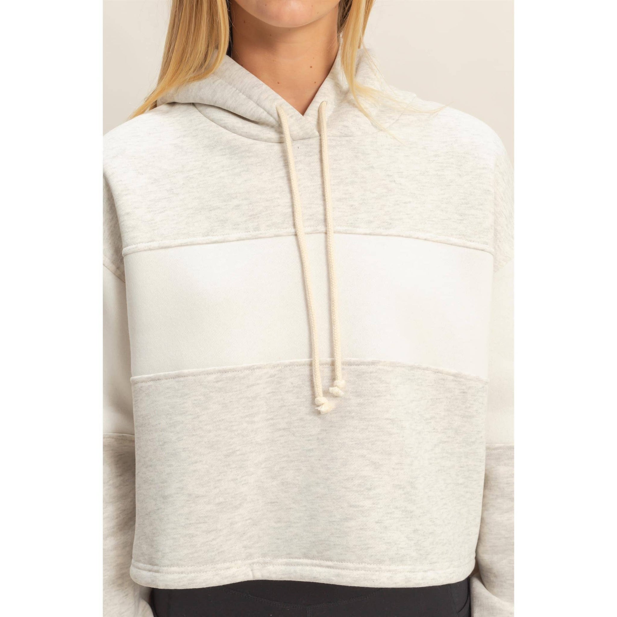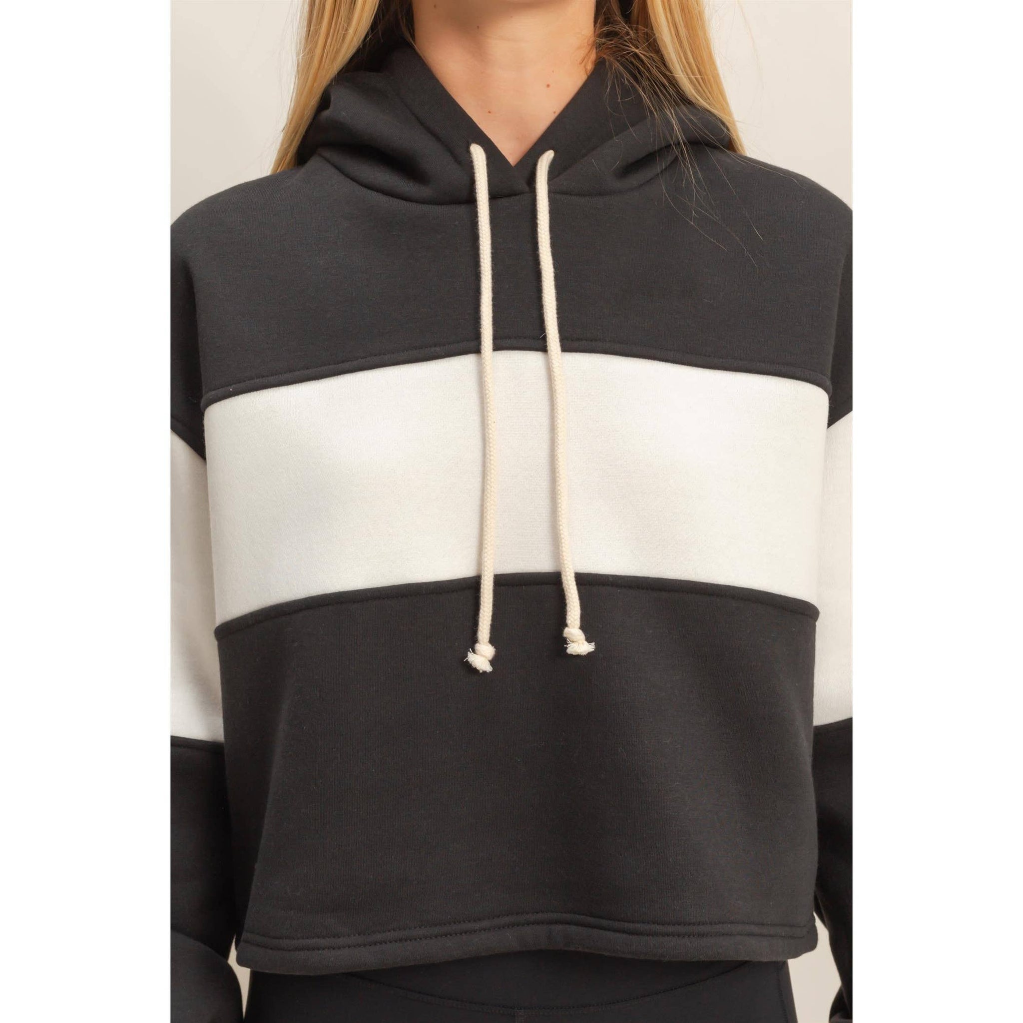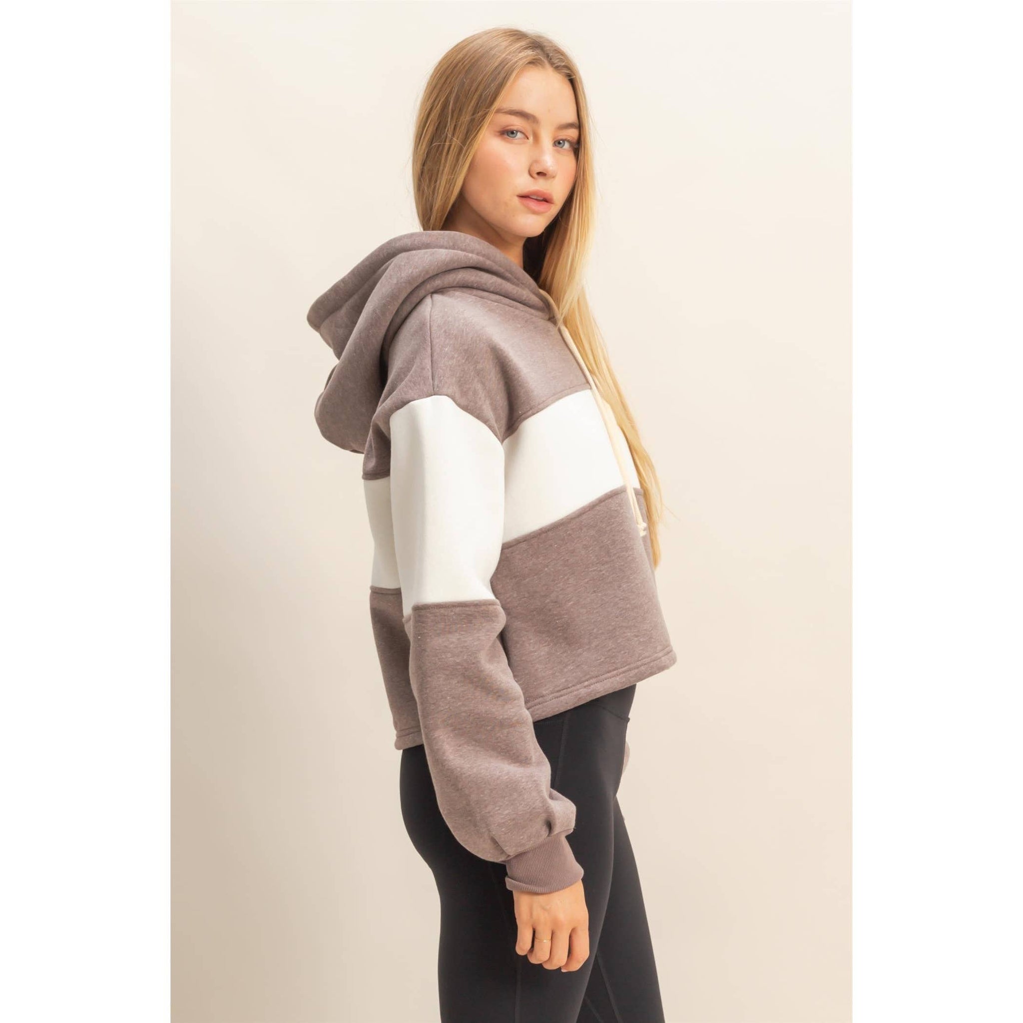 Discover the key to casual comfort with this stylish hoodie, featuring a modern block panel design perfect for off-duty days. Its relaxed fit ensures ease of movement, making it ideal for layering over tees. Pair it with your favorite denim cut-offs or leggings for a laid-back look that transitions seamlessly from a relaxed brunch to a leisurely park stroll. Model Is 5' 8" Tall, 32" Chest, 25" Waist, 34" Hips And Wearing A Size Small. Designed In The USA