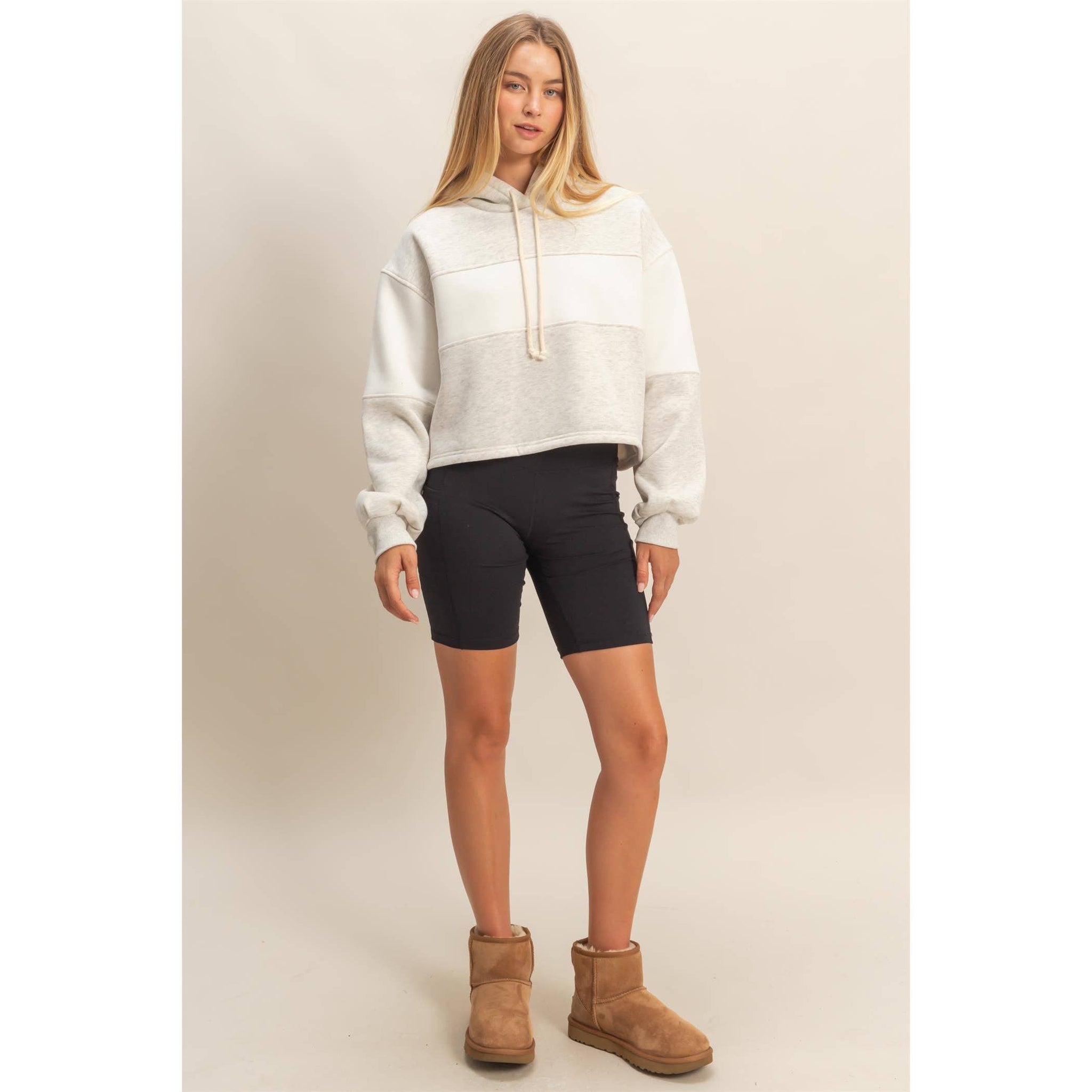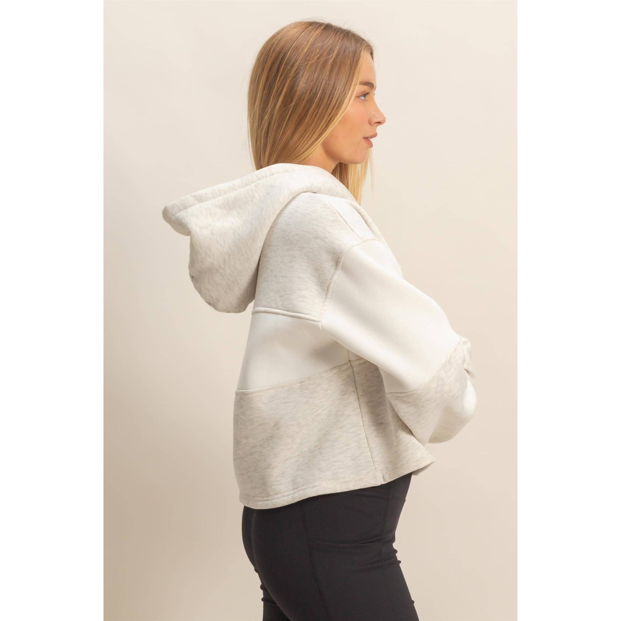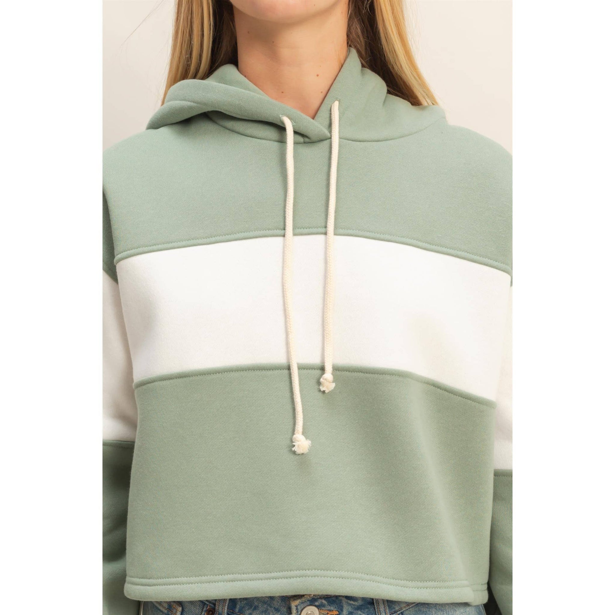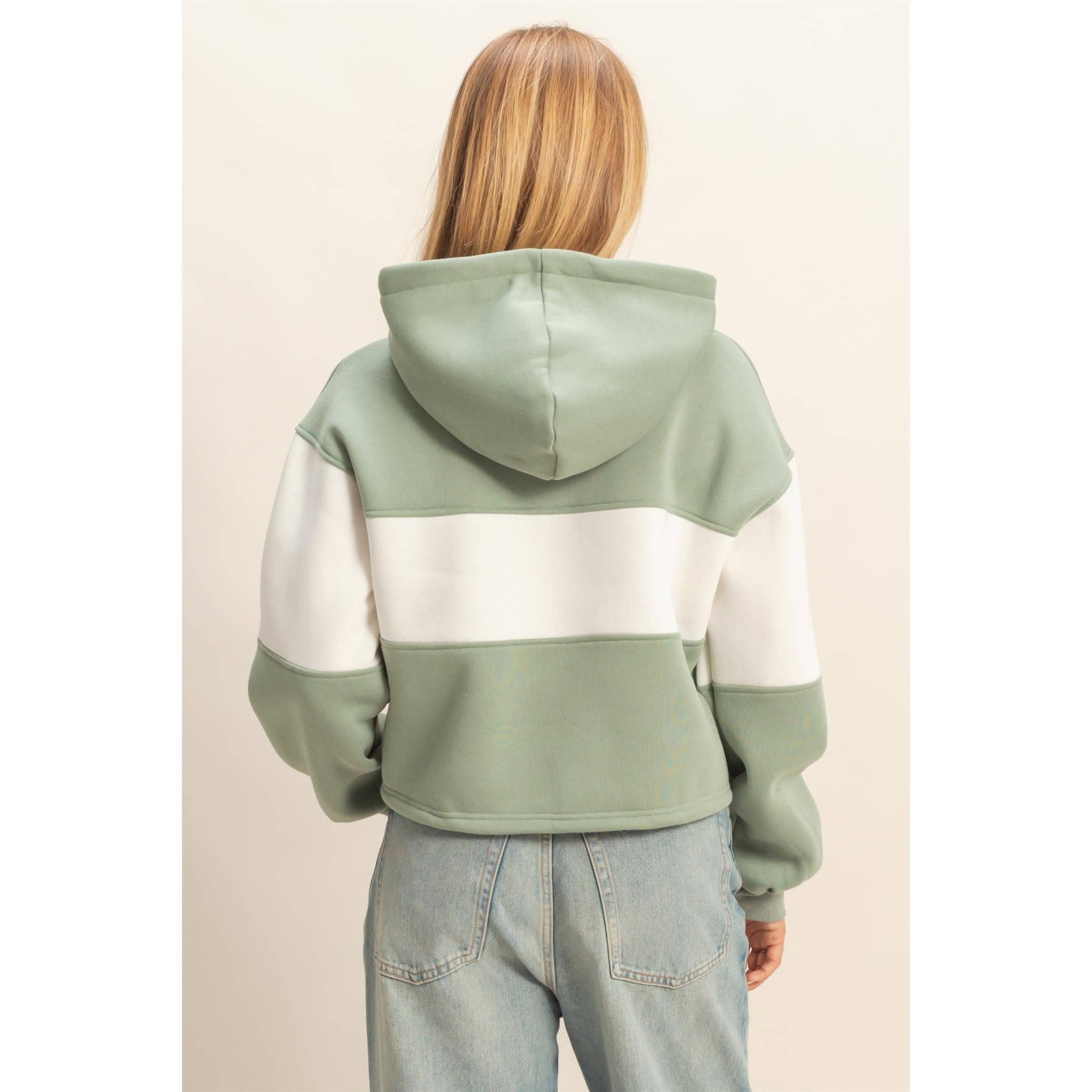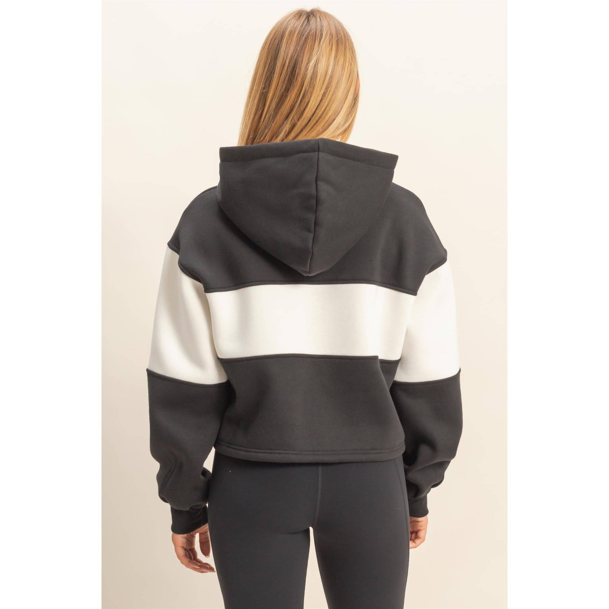 Discover the key to casual comfort with this stylish hoodie, featuring a modern block panel design perfect for off-duty days. Its relaxed fit ensures ease of movement, making it ideal for layering over tees. Pair it with your favorite denim cut-offs or leggings for a laid-back look that transitions seamlessly from a relaxed brunch to a leisurely park stroll. Model Is 5' 8" Tall, 32" Chest, 25" Waist, 34" Hips And Wearing A Size Small. Designed In The USA