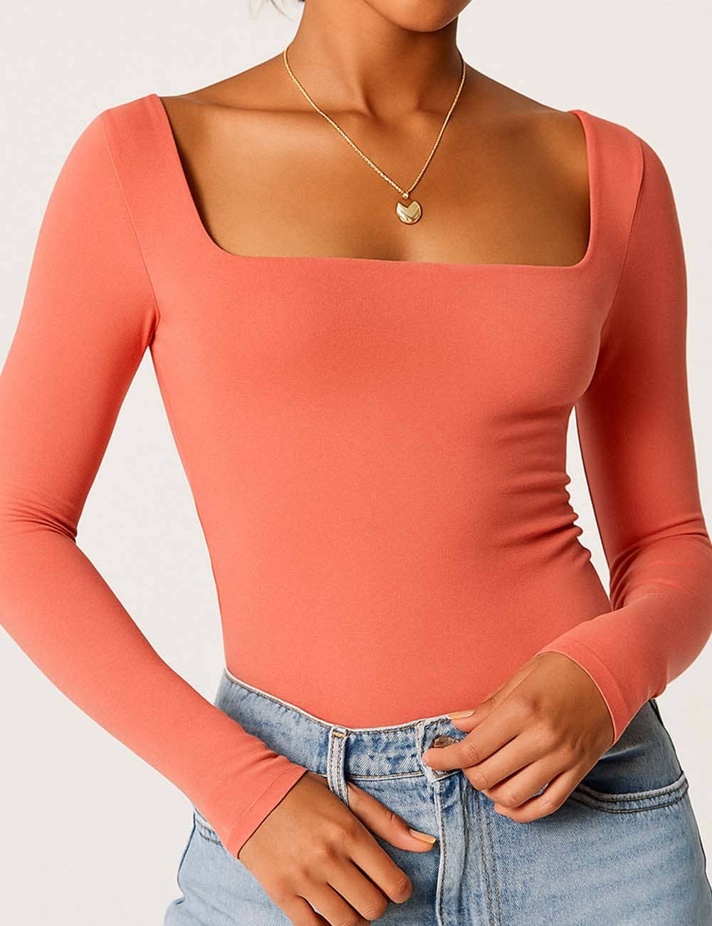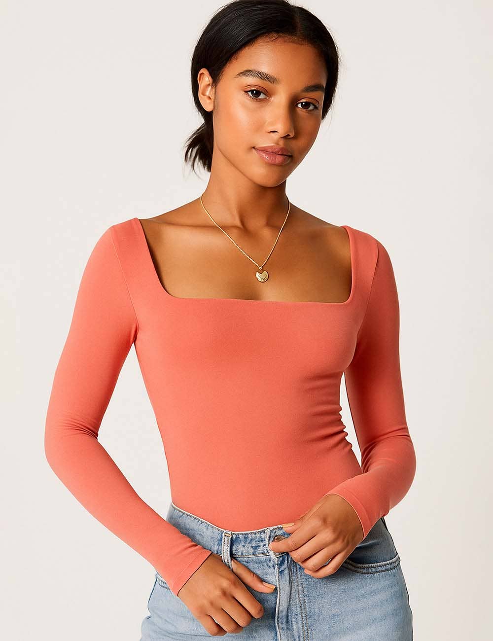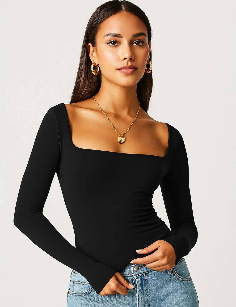 Features: * Ladies Basic Tee * Cotton and Polyester * Fabric with Stretch * Solid Color * Square Neck * Long Sleeves * Cropped Cut * Clean Line * Slim Fitting Package:* Package include 1 * Ladies Basic Tee Model Fitting: * Model wearing size S * Model Size: Height - 5'7" Bust - 33" Hips - 34.6" Waist- 24.4"