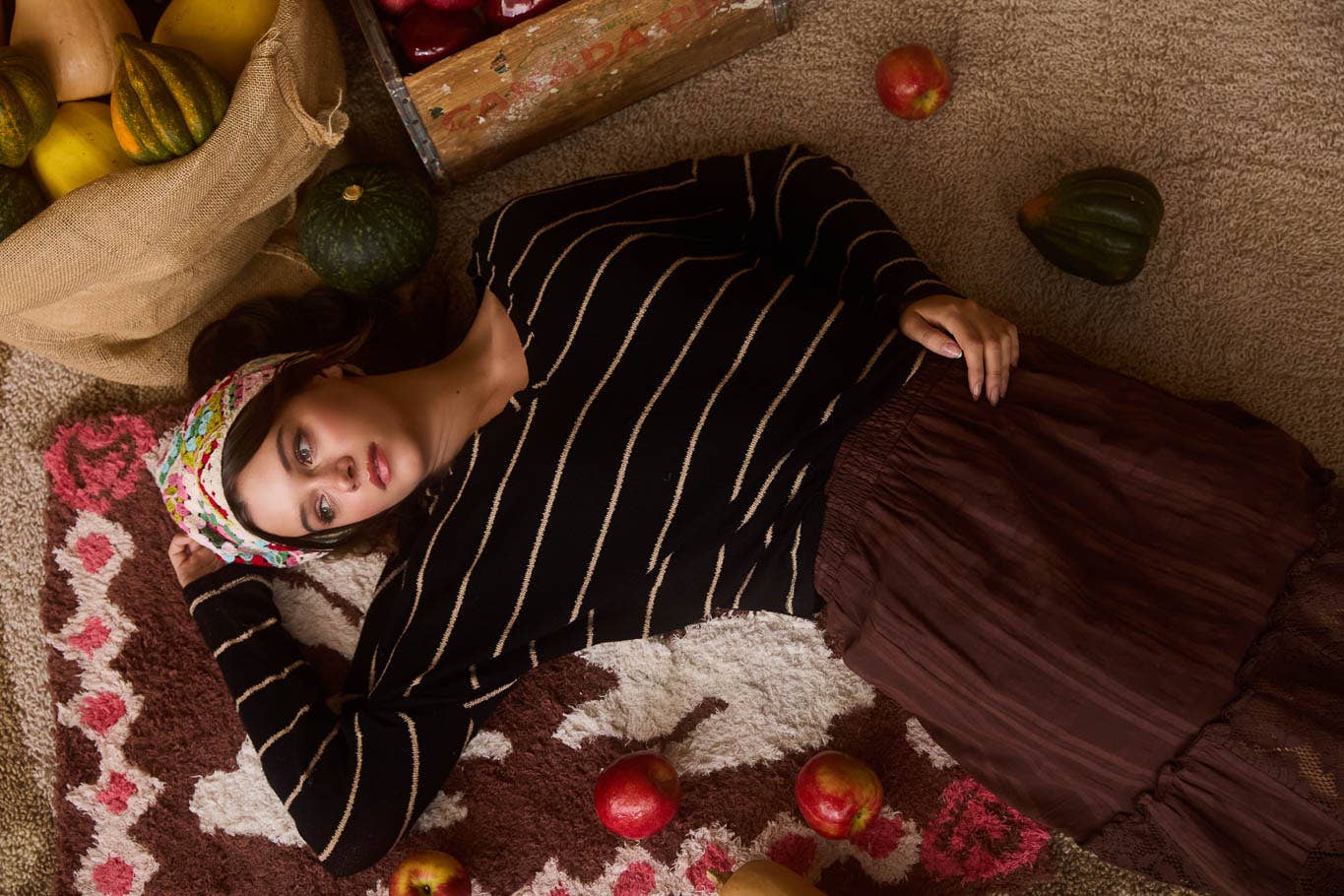 STRIPE V NECK DROP SHOULDER LONG SLEEVE KNIT TOP: CREAM