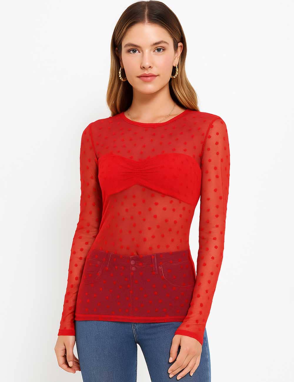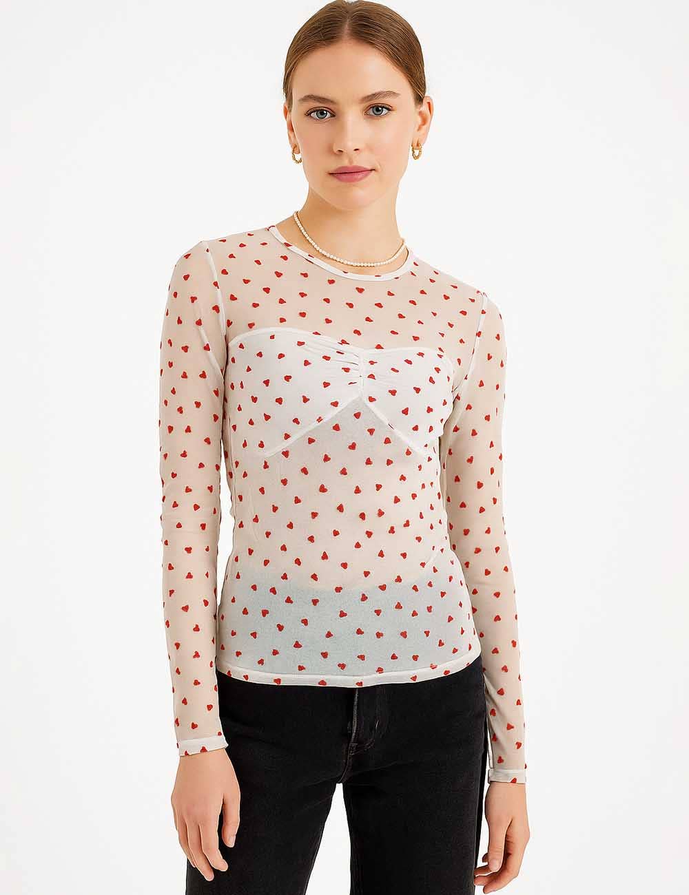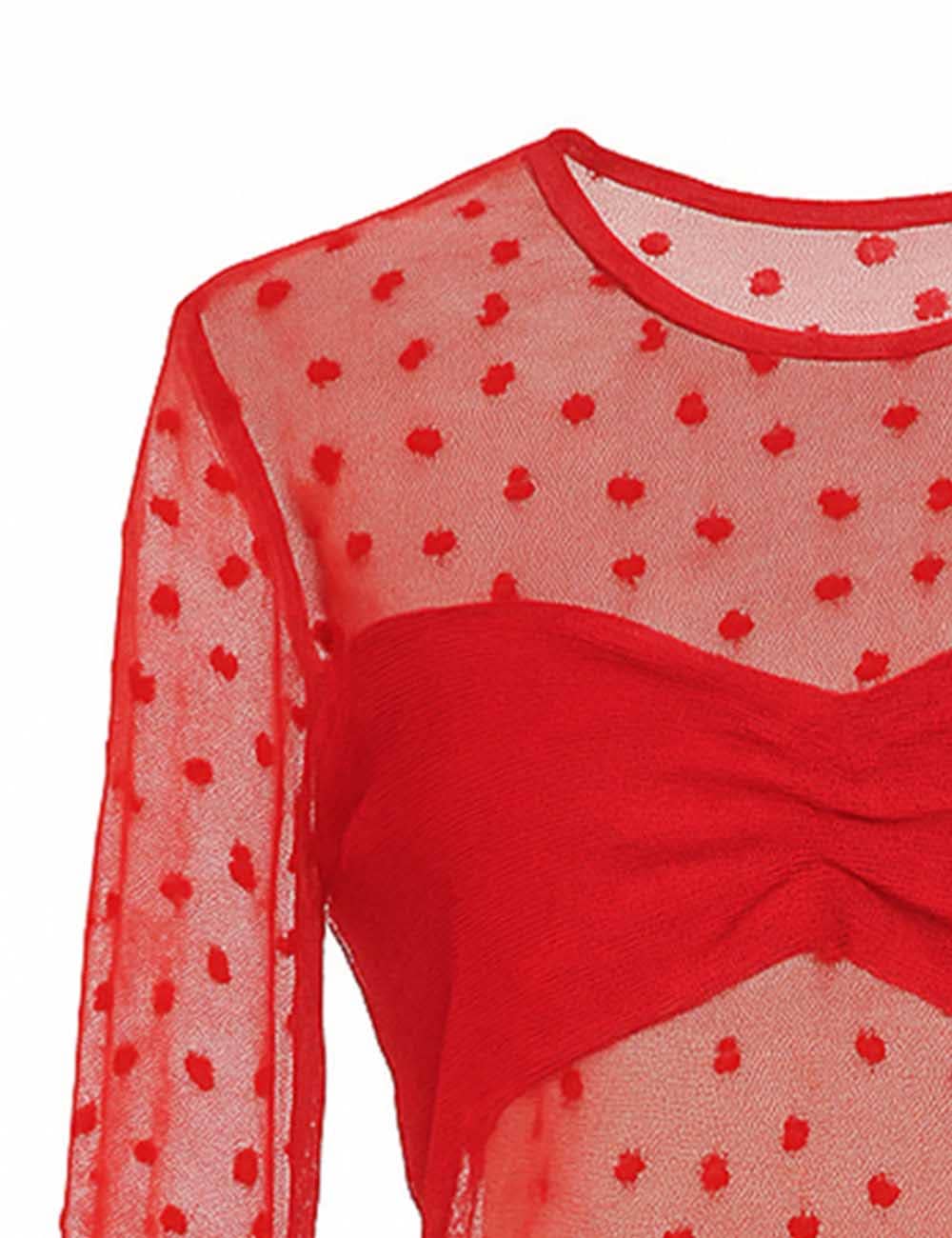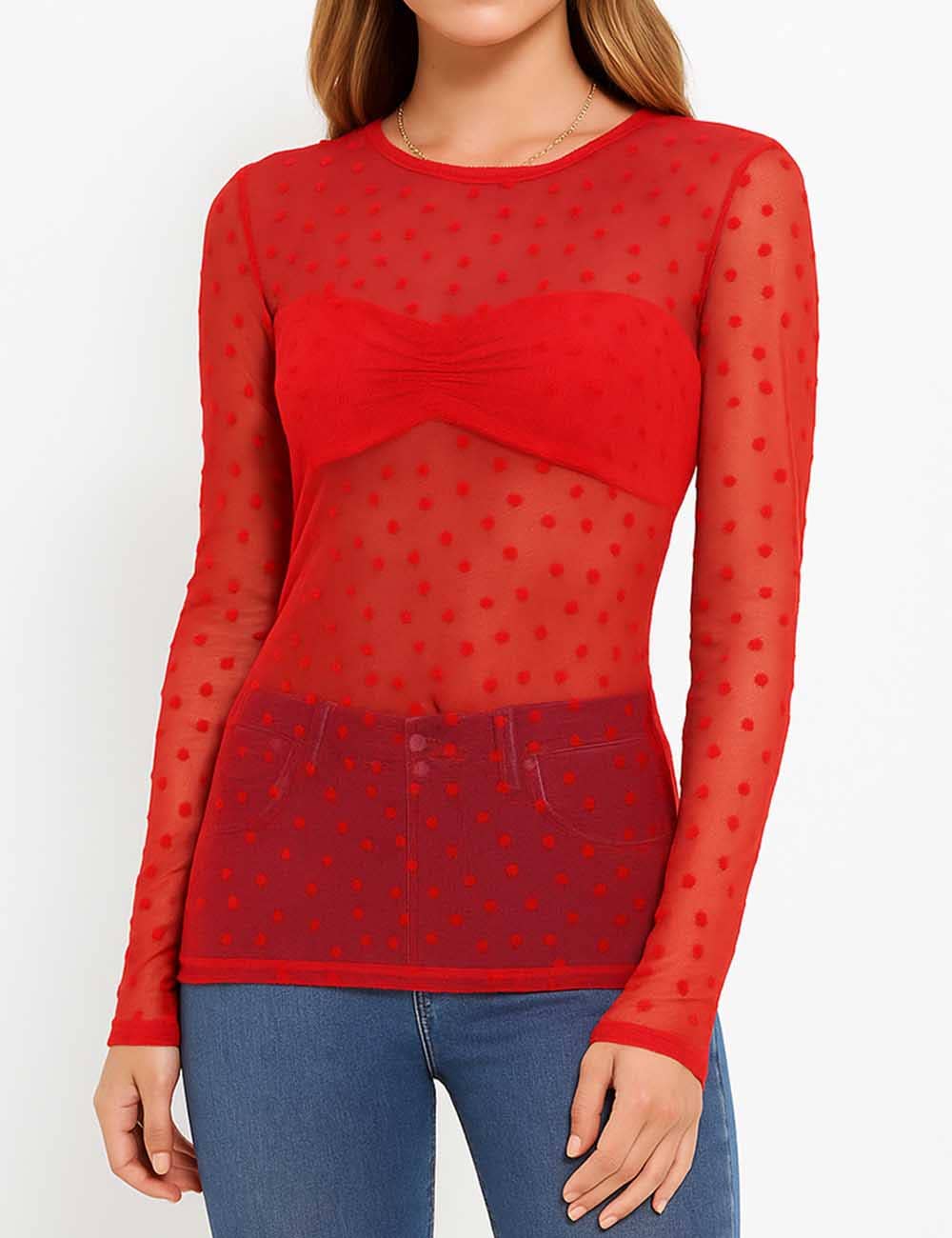 Features: * Ladies Blouse * 100% Polyester * Fabric with Stretch * Heart Mesh * Round Neck * Long Sleeves * See Sheer * Casual Fitting * Item Code: SKTKX71 Package: * Package include 1 * Ladies Blouse Model Fitting: Model wearing size S * Model Size: Height - 5'8" Bust - 33" Hips - 34.6" Waist- 24.4"